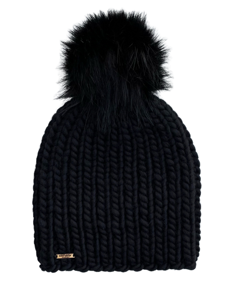 Adult Luxury Hand Knit Hat | Merino Wool | Black | Slub