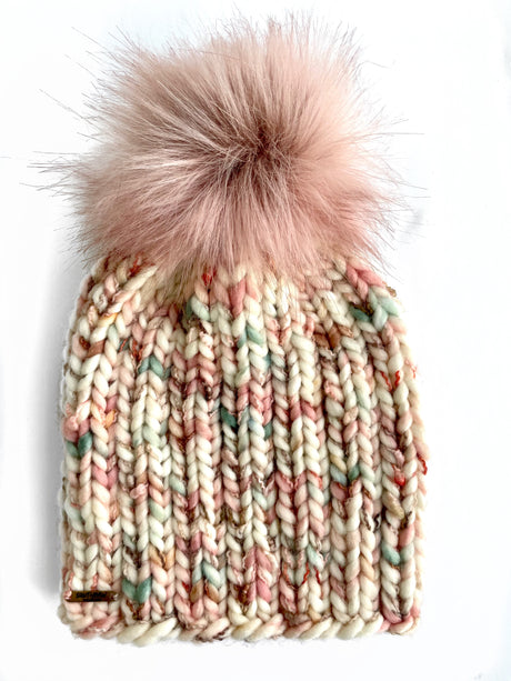 Adult Luxury Hand Knit Merino Wool Hat | Multi Pastel Slub