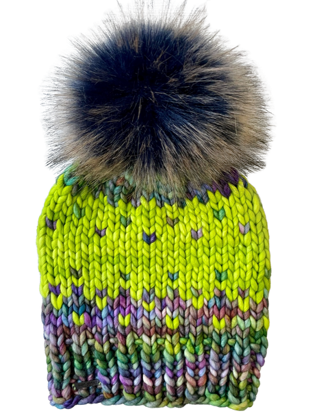 Adult Luxury Hand Knit Merino Wool Hat | Neon Yellow
