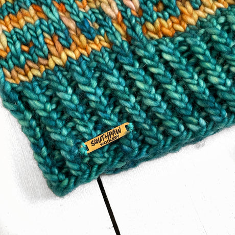 Adult Hand Knit Split Brim Hat | Merino Wool | Black | Turquoise