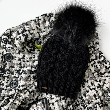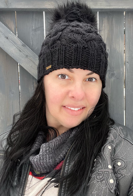 Adult Luxury Hand Knit Hat | Merino Wool Hat | Black Cable