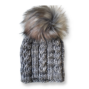 Adult Luxury Hand Knit Hat | Merino Wool Hat | Cloudy Day Grey