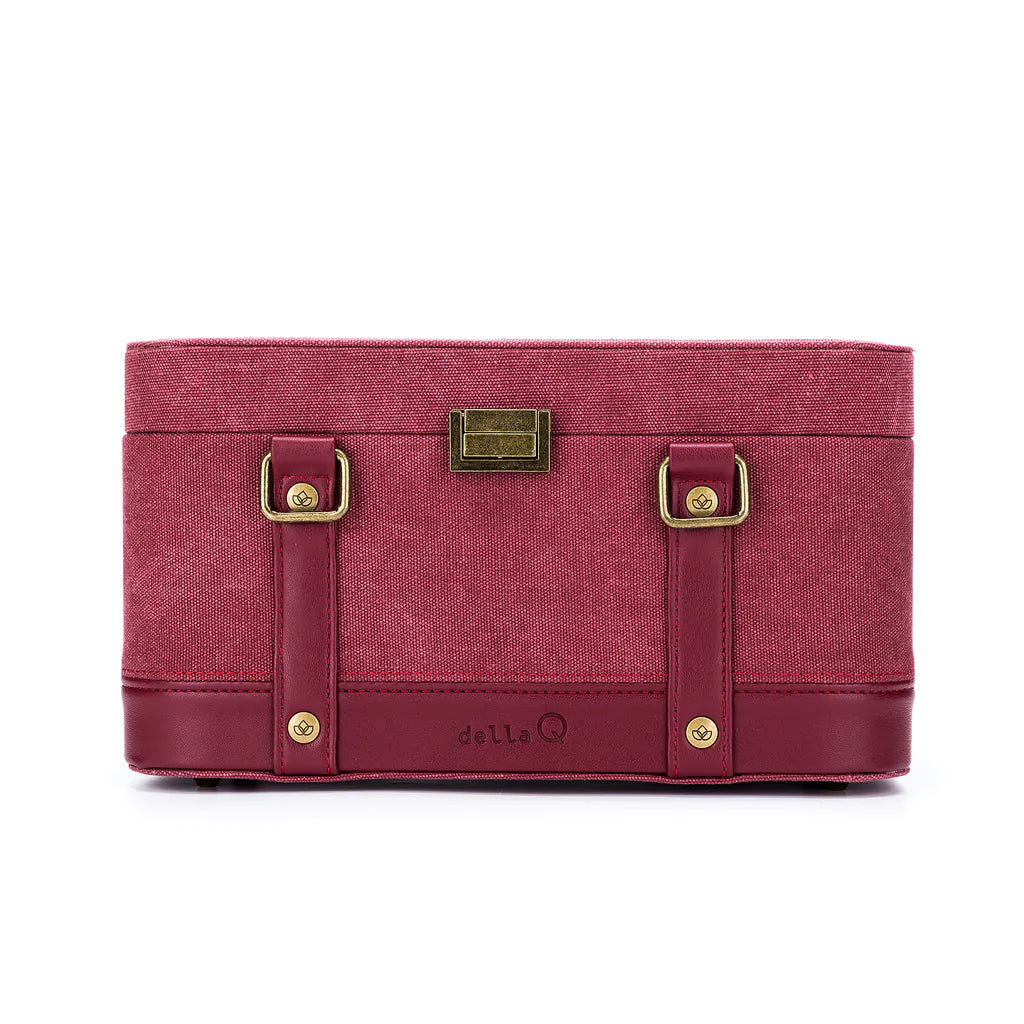 Made for our wanderlust makers, we’re excited to share the reimagined Train Case. When the case is closed, you can knit or crochet from either side through a metal opening. When it’s open, you can easily read your pattern on the lid as it can be held in place with included magnets. The removable handles can be snapped in multiple directions to more securely store your case or to grab it easily on the go.