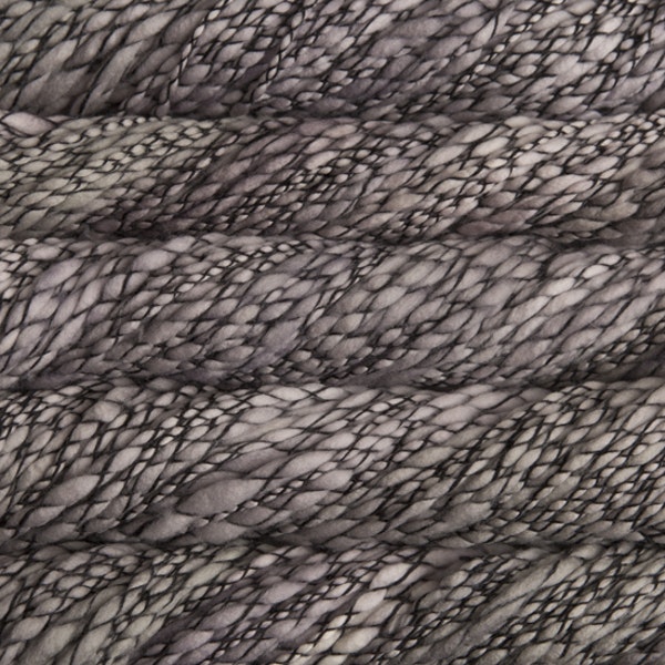 A unique yarn that begins with a bulky thick-and-thin single made of the softest superwash merino wool, and then criss-crossed with a black or white binder thread. The yarn is then dyed one of the signature kettle-dyed colorways loved around the world. Something unlike any yarn they've made before, inspired by a particular style of hand-spun yarn. Caracol knits up into a cozy, fluffy fabric with so much texture and visual interest. Simple stitch patterns really show it off.