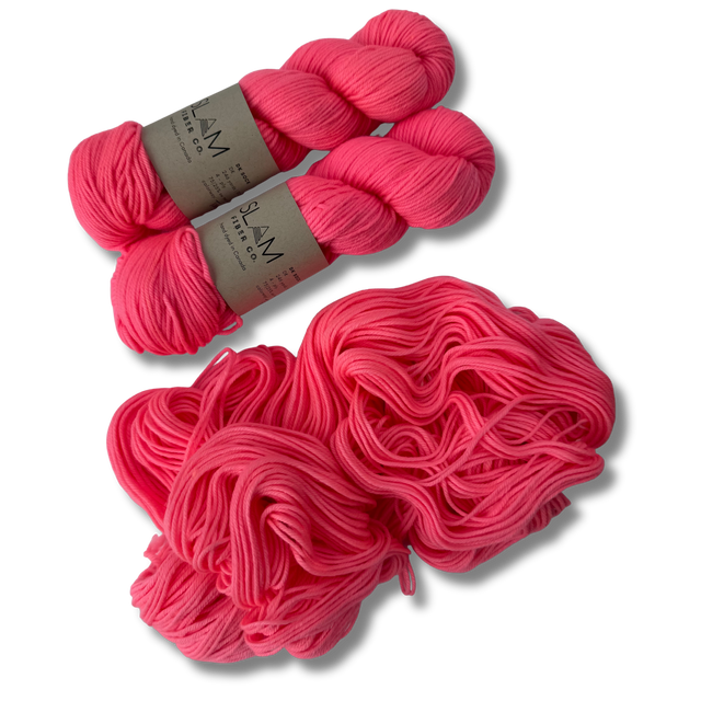 Slam Fibre Co. Dk Sock is a double knit weight yarn that can be used for a wide range of knitting or crochet projects. This ethically sourced, mulesing free, merino/nylon yarn is hand dyed in Alberta, Canada and its dk weight makes quick work of a pair of socks!  It's a bunch of fun to knit and crochet with for a wide variety of projects including sweaters and baby items too!