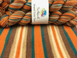 Pumpkin Spice is a warm self-striping pattern of pumpkin orange, teal green, warm spice brown, light spice tan and whipped cream ecru.