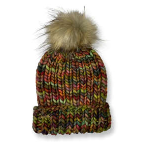 Adult Luxury Hand Knit Hat | Merino Wool Hat | Multi Colour Earthy | Folded Brim