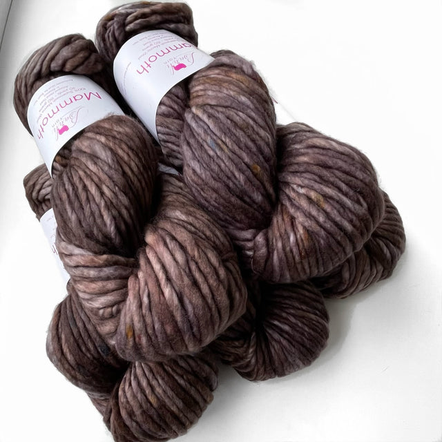 Baah Yarn Mammoth is a beautiful super bulky yarn made from 100% superwash, single ply, merino wool. Each skein of yarn is carefully hand painted in studio in Las Vegas, Nevada. The colors are spectacular and the quality is unmatched. Mammoth is truly a dream to work with.