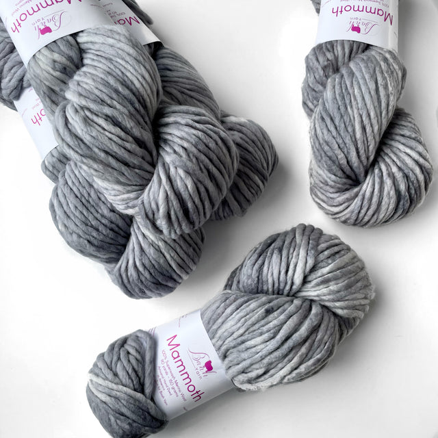 Baah Yarn Mammoth is a beautiful super bulky yarn made from 100% superwash, single ply, merino wool. Each skein of yarn is carefully hand painted in studio in Las Vegas, Nevada. The colors are spectacular and the quality is unmatched. Mammoth is truly a dream to work with.