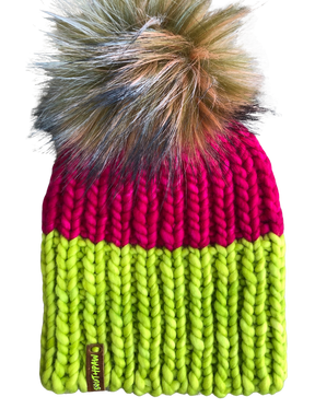 Bringing Back Neon Beanie | Neon Fuchsia and Green Merino Wool Hat