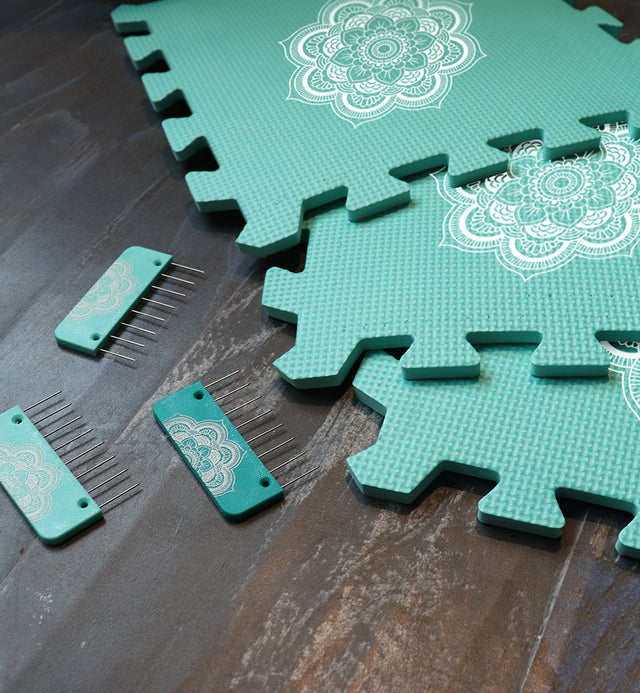 All mats fit together like puzzle pieces, giving the knitter various customized shape & size options.