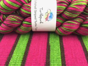 Turtlepurl Yarns Striped Turtle Toes sock yarn is a beautiful sock yarn to work with. This high twist, 4 ply sock yarn is durable, smooth and incredibly soft. A blend of superwash merino and nylon creates a soft and gorgeous fabric.