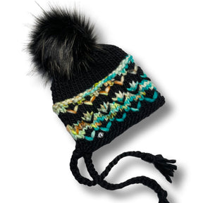 Adult Hand Knit Split Brim Hat | Merino Wool | Black | Turquoise