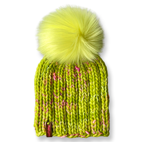 Child's Luxury Hand Knit Hat | Merino Wool Hat | Neon Green | Pink |