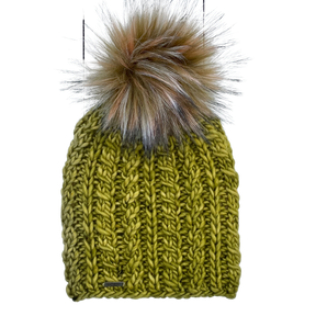 - luxurious handmade removable faux fur pom (remove prior to washing hat)