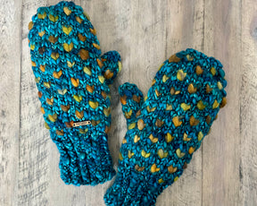 Adult merino wool thrummed mittens | Teal Feather | Tobacco