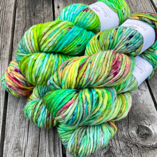 Baah Yarn Sequoia is a beautiful super bulky yarn made from 100% superwash, single ply, merino wool. Each skein of yarn is carefully hand painted in studio in Las Vegas, Nevada. The colours are spectacular and the quality is unmatched. Sequoia is truly a dream to work with.