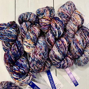 A rare single-ply superwash yarn. Malabrigo superwash merino takes color in the most vivid, rich way, and nowhere is that more apparent than in the multi-layered hues of Mecha! Soft as always, Mecha has a slight thick-and-thin texture, a fantastic loft, and is the perfect size for quick but not-too-heavy projects.