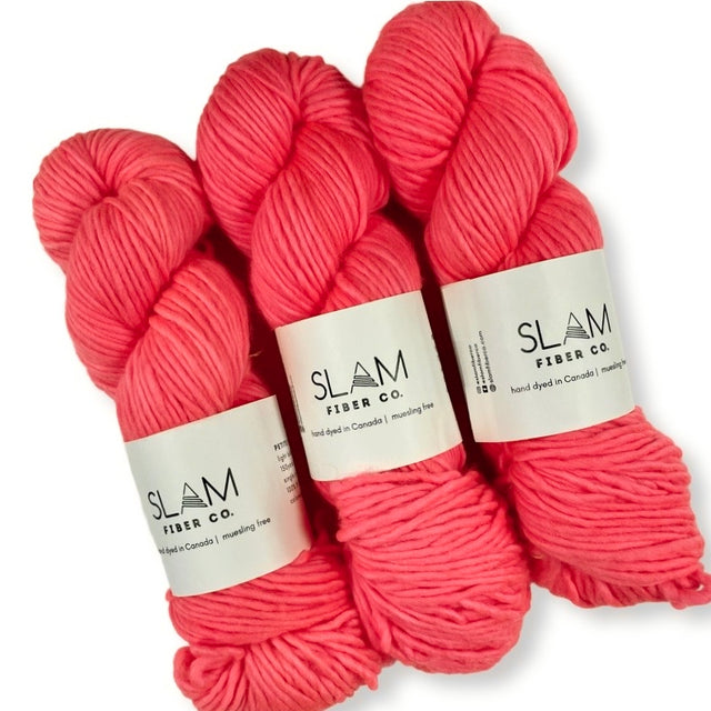 Slam Fibre Co. Petite Plush is an incredibly soft, single-ply yarn that works up beautifully on a wide range of knitting projects.  This  ethically sourced, mulesing free, merino is hand dyed in Alberta, Canada and its single ply texture makes it a dream to knit with. Enjoy the luxurious feel and gorgeous colors of this yarn while knitting your favourite patterns!