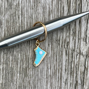 • You favorite old sneakers made into fun yarn jewelry to keep track of your rows, a perfect little gift to yourself or the knitter in your life!